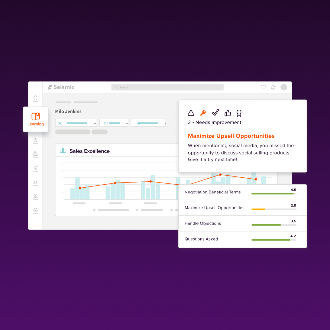 Seismic Learning ist eine KI-gestützte Sales-Training-Software, die die Leistung von Vertriebsteams mit personalisiertem, interaktivem Lernen steigert – damit sie jederzeit optimal auf Kundengespräche vorbereitet sind.