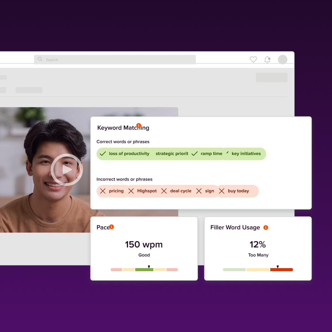 Erstellen Sie interaktive Online-Vertriebstrainings und simulieren Sie reale Szenarien mit KI-gestützten Rollenspielen. Videoaufzeichnungen stellen sicher, dass Ihre Vertriebsmitarbeitenden auf jede Kundeninteraktion vorbereitet sind.